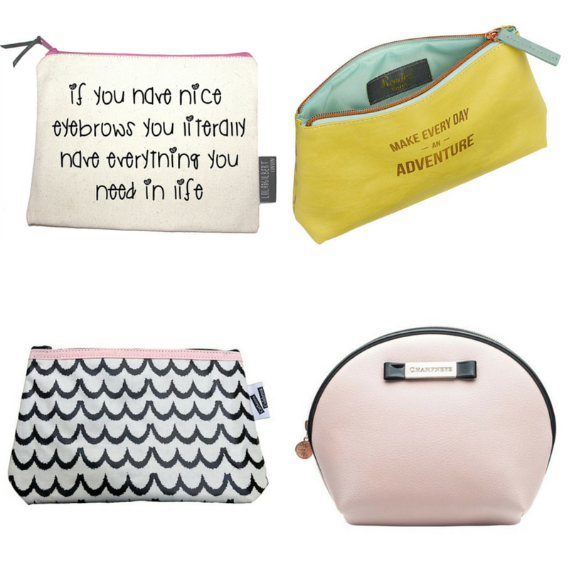 From top left: Lola & Gilbert Makeup Bag £12.99, Rendezvous Makeup Bag £14.95, Catherine Colebrook Monochrome Scallop Makeup Bag £12, Champneys Cosmetic Bag £10