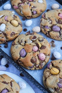 To ensure that the cookies are filled and bursting with mini egg delights, chop up at least 200g of Mini Eggs to include within the gooey mix and at least 50g Mini Eggs to decorate once you’ve placed your cookies on a baking tray. If you want them extra chocolatey, why not melt some white chocolate to drizzle all over once they’re cooked and ready to enjoy?
