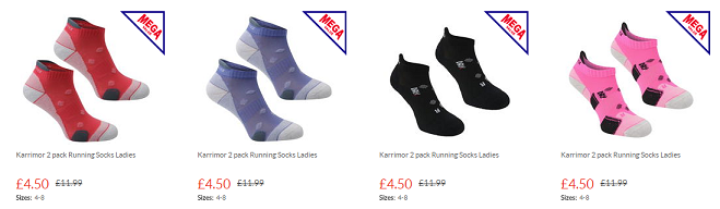 FROM LEFT: Sports Direct Karrimor Ladies Running Sock (2-pack currently on for £4.50).