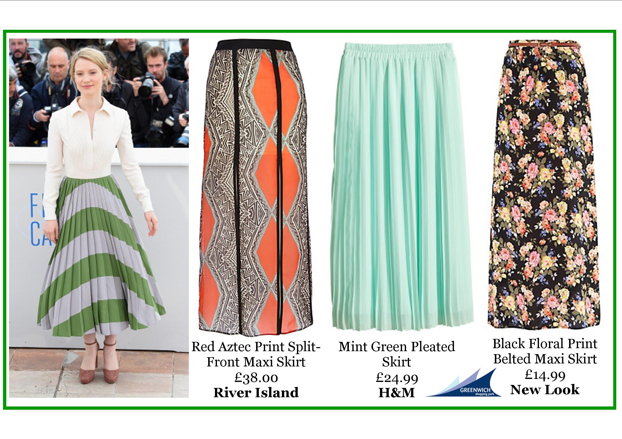 We love Mia Wasikowska’s classic pleated maxi skirt at the Cannes Film Festival.