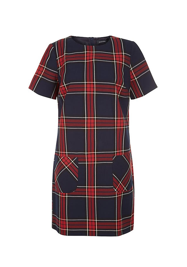 Try this simple check pinafore dress, just £13 from New Look. This simple yet chic style makes the dress perfect for work or play.