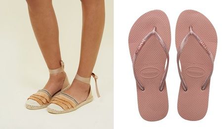(New Look Espadrilles, £17.99. Havaiana Flip Flops at JD Sports, £28)